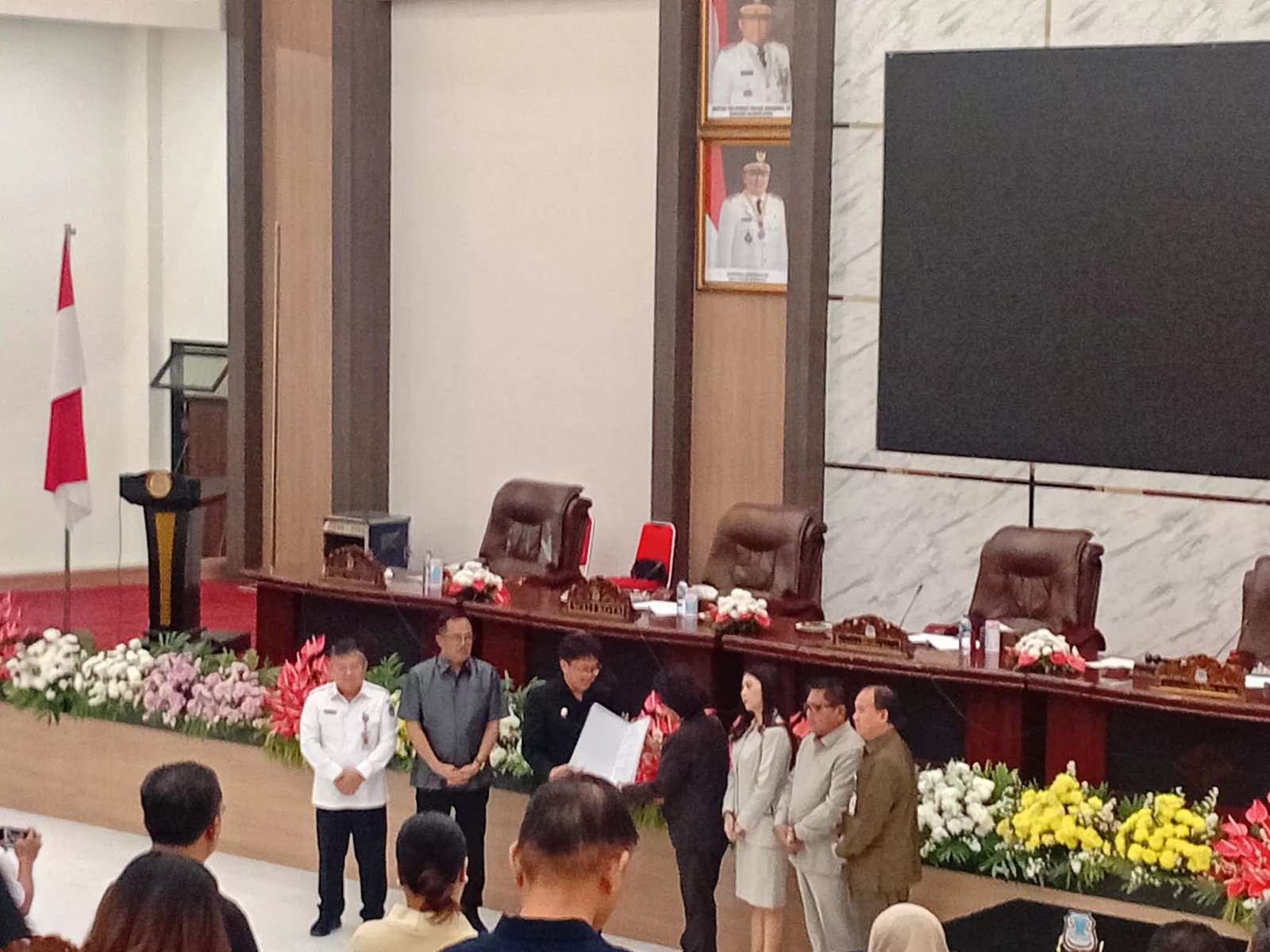 Usai penandatanganan, Ketua DPRD menyerahkan dokumen keputusan DPRD kepada Wali Kota Manado sebagai simbol resmi persetujuan bersama terhadap KUA-PPAS APBD 2026.