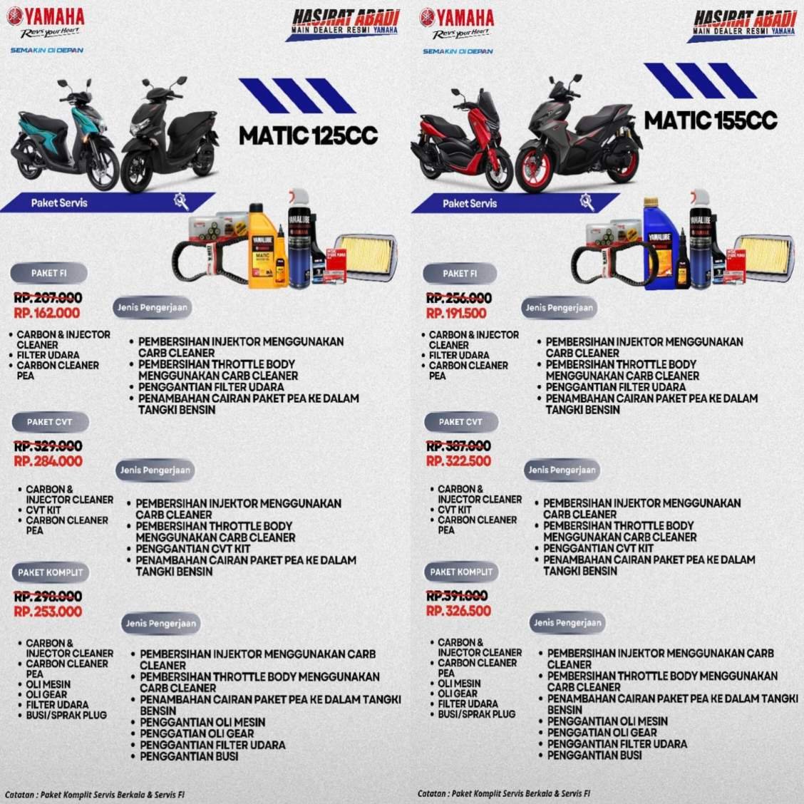 Selain itu, ada juga paket CVT dan paket komplit yang mencakup perawatan lebih menyeluruh, seperti penggantian CVT kit, oli mesin, oli gear, hingga busi.