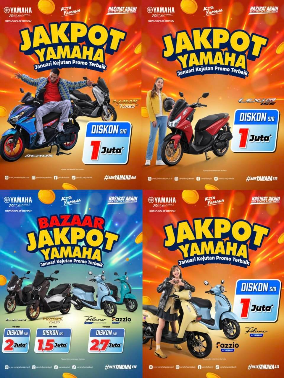 Segera kunjungi dealer resmi Yamaha PT Hasjrat Abadi di Sulawesi Utara dan sekitarnya sebelum momen jakpot ini lewat.