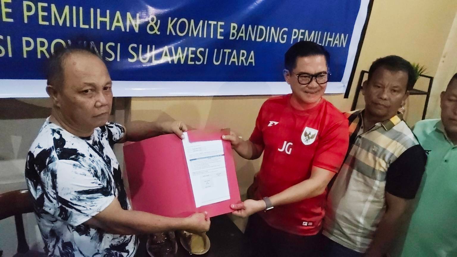 Kedatangan Joune Ganda diterima langsung oleh Ketua Komite Pemilihan, Roy Maramis, bersama jajaran Komite Pemilihan dan Komite Banding.