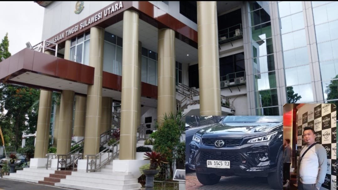 Reinol mendatangi kantor Kejati Sulut, menggunakan mobil Fortuner warna Hitam DB 1045 RJ di Kantor Kejati Sulut pukul 08.30 wita, senin pagi.