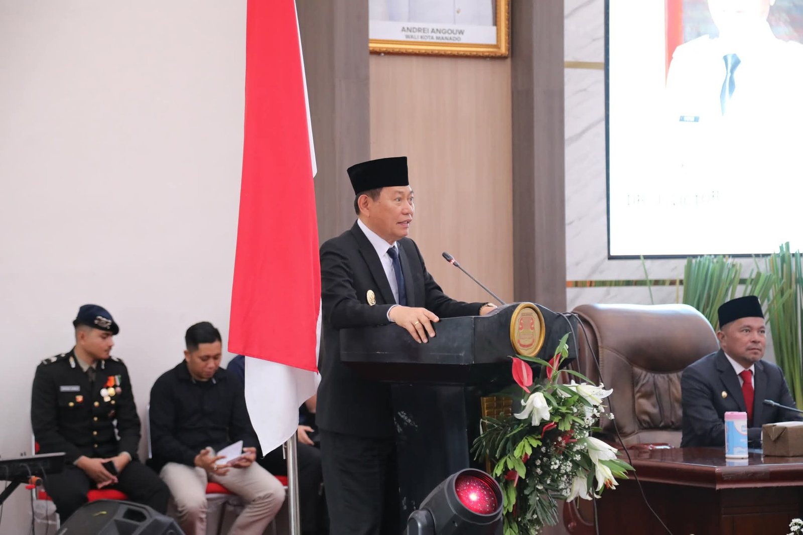 Mengusung tema “Persona Harmoni, Manado Maju dan Sejahtera,” rapat paripurna turut dihadiri Wakil Gubernur Sulawesi Utara Dr. Victor Mailangkay, para kepala daerah seperti Bupati Minsel, Mitra, Boltim, Forkopimda Kota Manado, Ketua dan Anggota DPRD Manado, Rektor Unsrat, Ketua KPU dan Bawaslu Kota Manado, mantan kepala daerah, hingga jajaran SKPD dan pimpinan lembaga keagamaan serta unsur masyarakat.