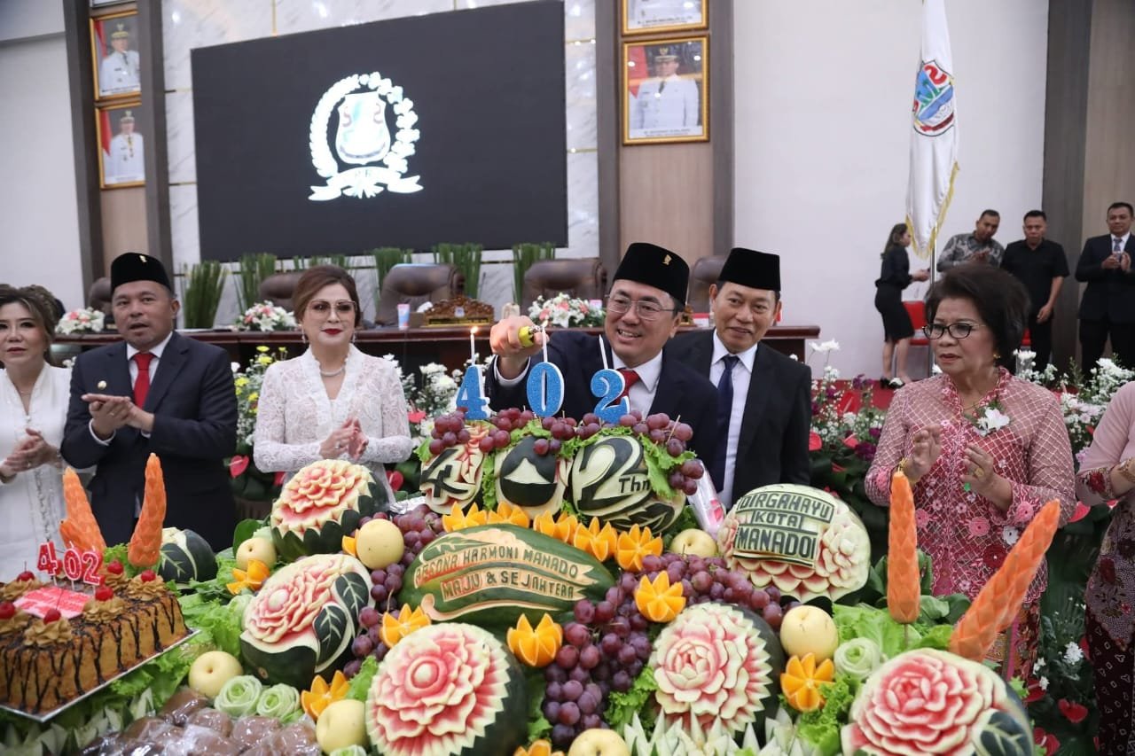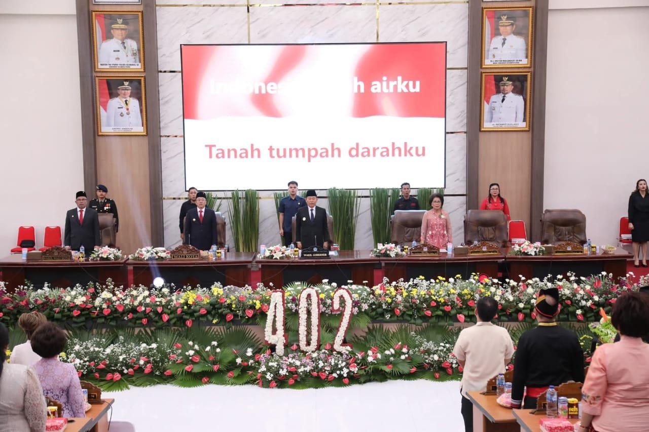 MANADO,Narasindo.com – Dewan Perwakian Rakyat Daerah (DPRD) Kota Manado menggelar Rapat Paripurna Istimewa dalam rangka memperingati Hari Ulang Tahun ke-402 Kota Manado, Senin (14/7/2025).