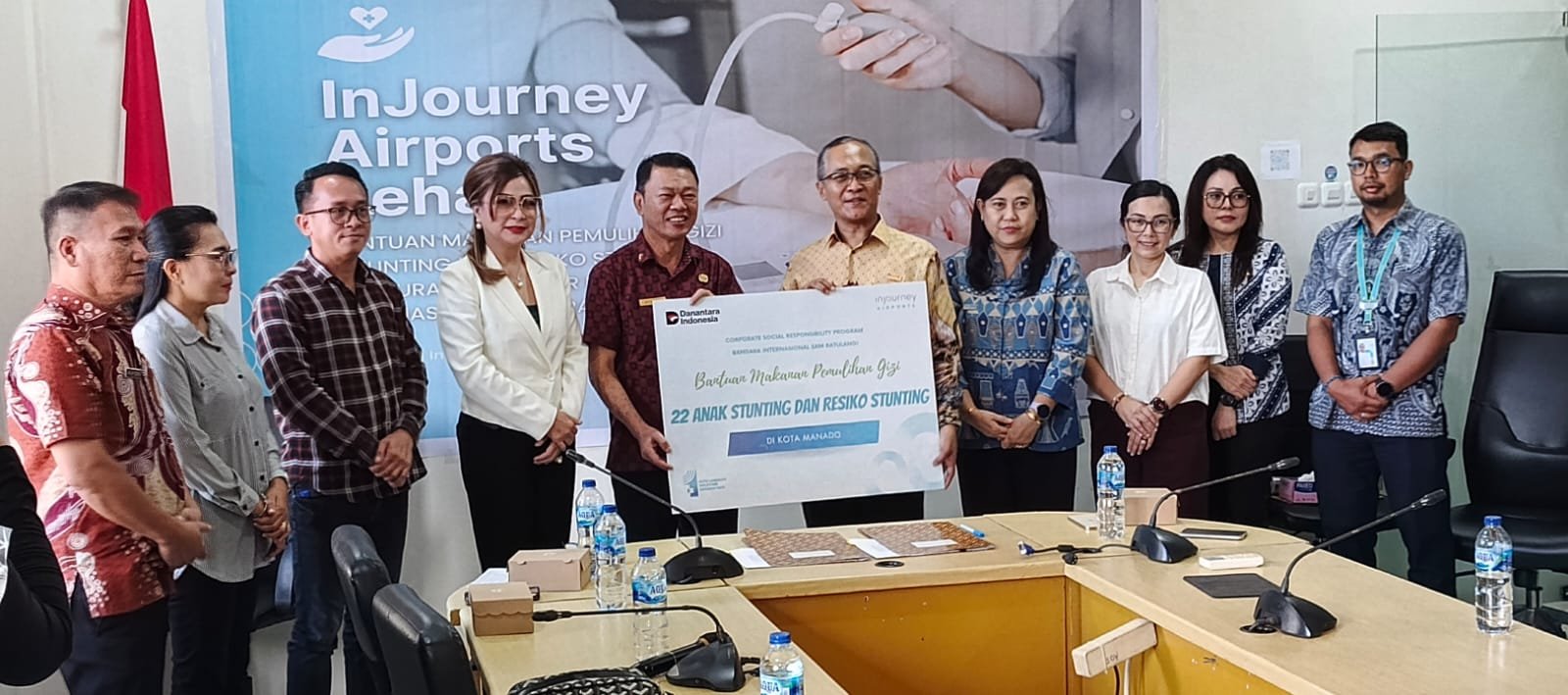 MANADO,Narasindo.com – Pemerintah Kota (Pemkot) Manado menerima bantuan makanan pemulihan gizi kepada balita bermasalah gizi (Stunting atau Resiko Stunting) oleh InJourney Airports atau PT Angkasa Pura Indonesia (Apindo) Cabang Manado yang dilaksanakan di Ruang Rapat Pierre Tendean Kantor Cabang Angkasa Pura Manado, Jumat (24/10/2025).