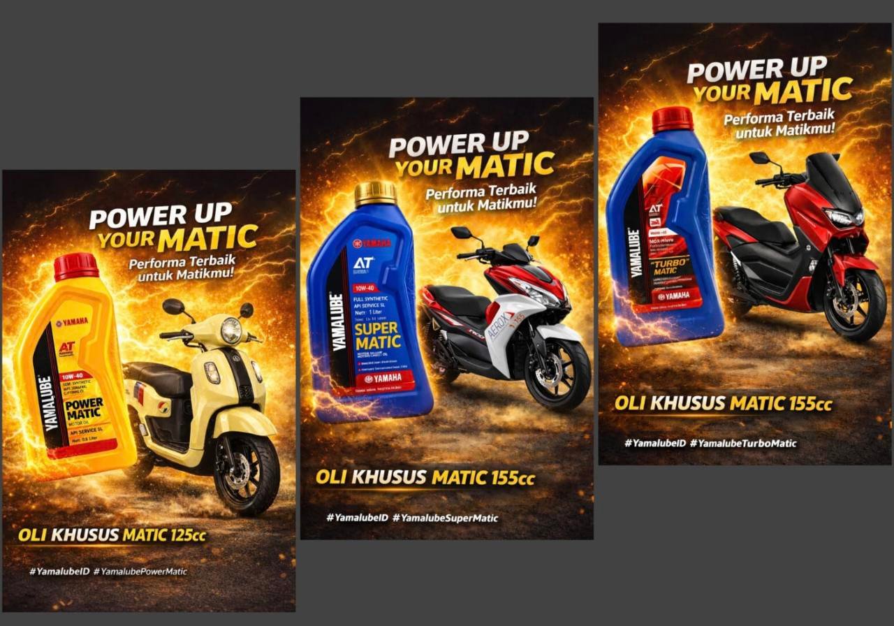 Yamalube Turbo Matic – Dirancang untuk kebutuhan performa mesin matic 155cc modern, menjaga akselerasi tetap responsif dan suhu mesin lebih stabil.