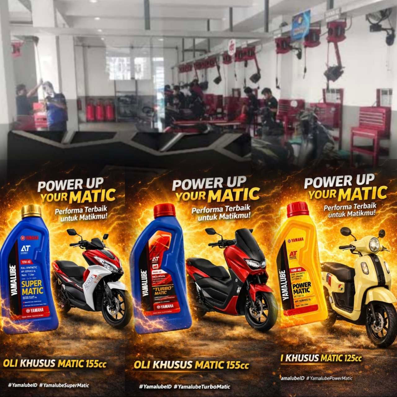Yamalube Turbo Matic – Dirancang untuk kebutuhan performa mesin matic 155cc modern, menjaga akselerasi tetap responsif dan suhu mesin lebih stabil.