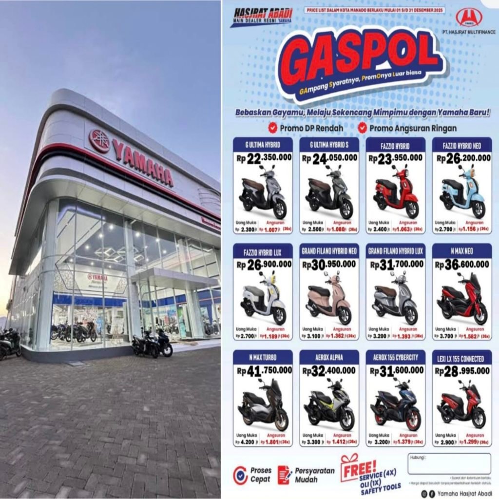 Promo akhir tahun ini jadi bukti nyata bahwa beli motor Yamaha di Hasjrat Abadi Manado sekarang makin gampang dan makin untung.
