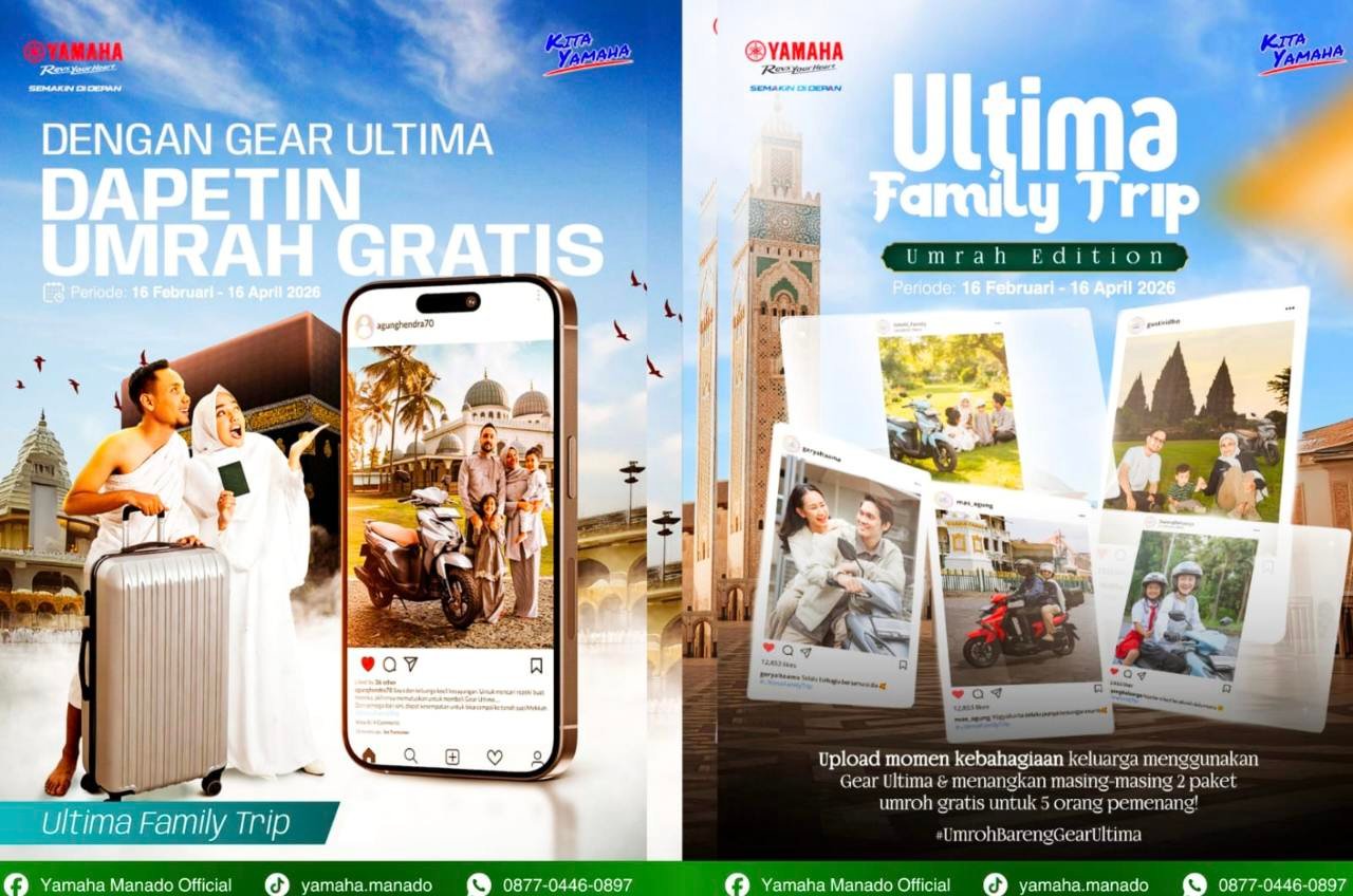 MANADO,Narasindo.com- Momentum Ramadan dimanfaatkan Yamaha Indonesia untuk menghadirkan program spesial yang sarat makna kebersamaan. Melalui program “Ultima Family Trip”, Yamaha mengajak masyarakat berbagi cerita kebahagiaan bersama keluarga dengan sepeda motor GEAR ULTIMA, sekaligus berkesempatan meraih hadiah utama berupa paket umroh gratis.