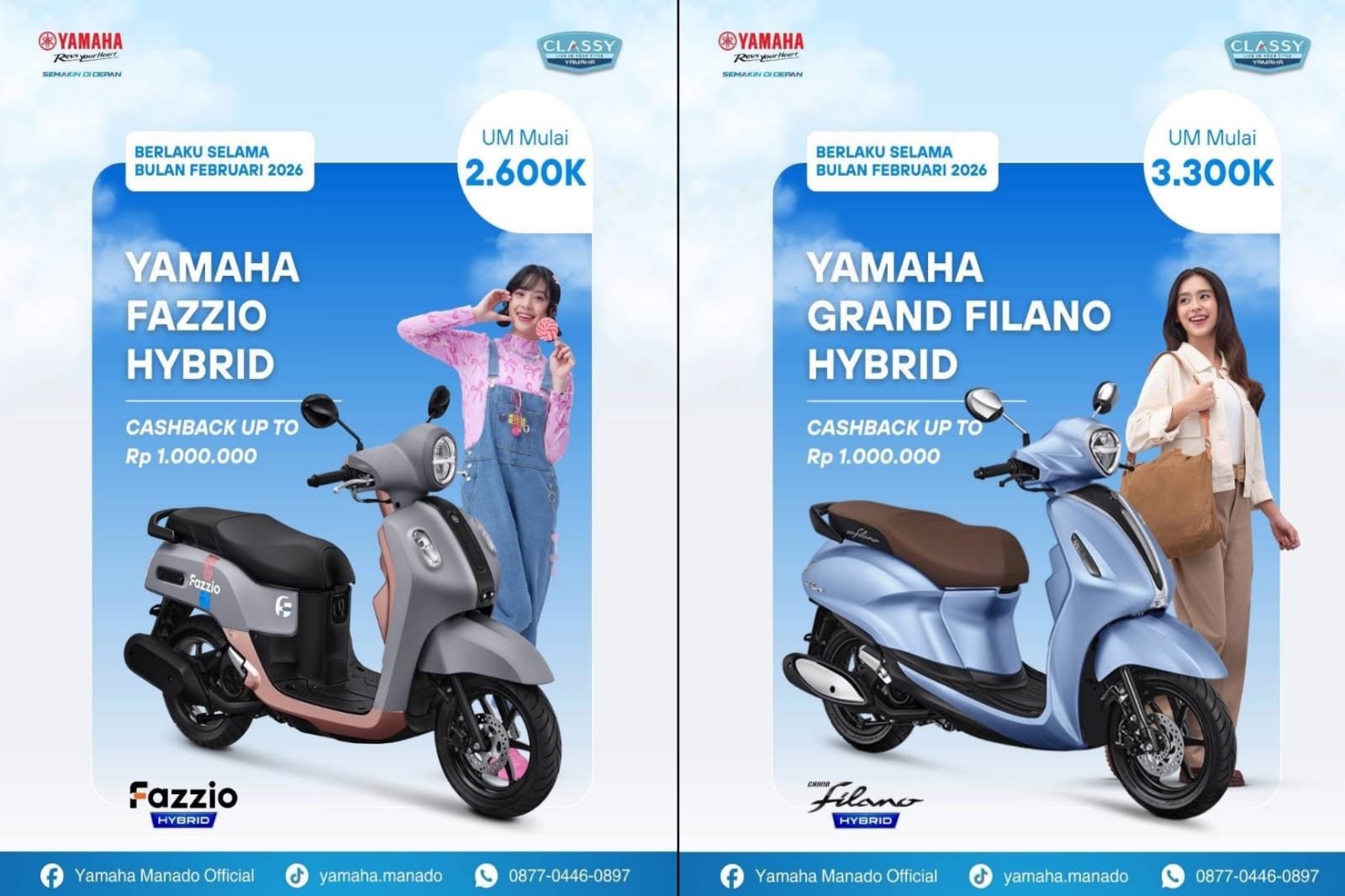 MANADO,Narasindo.com- Kalau ngomongin motor matik paling hype dan paling banyak wara-wiri di jalanan kota, dua nama ini nggak bisa dilewatkan, Yamaha Grand Filano dan Yamaha Fazzio.